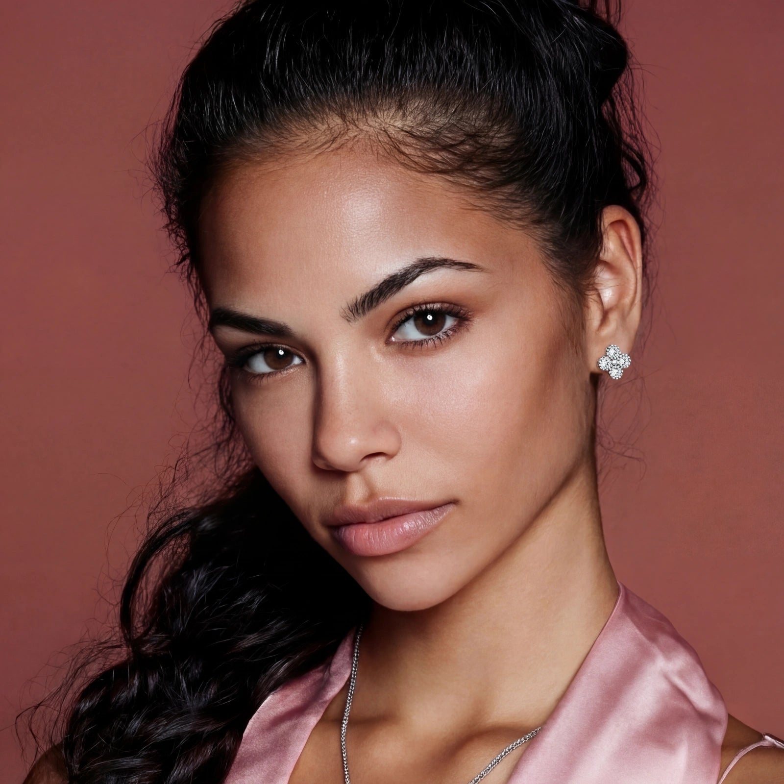 Sterling silver quatrefoil studs featuring sparkling moissanite—enhancing intuition and emotional balance—that absolutely steal the spotlight during golden hour selfies.